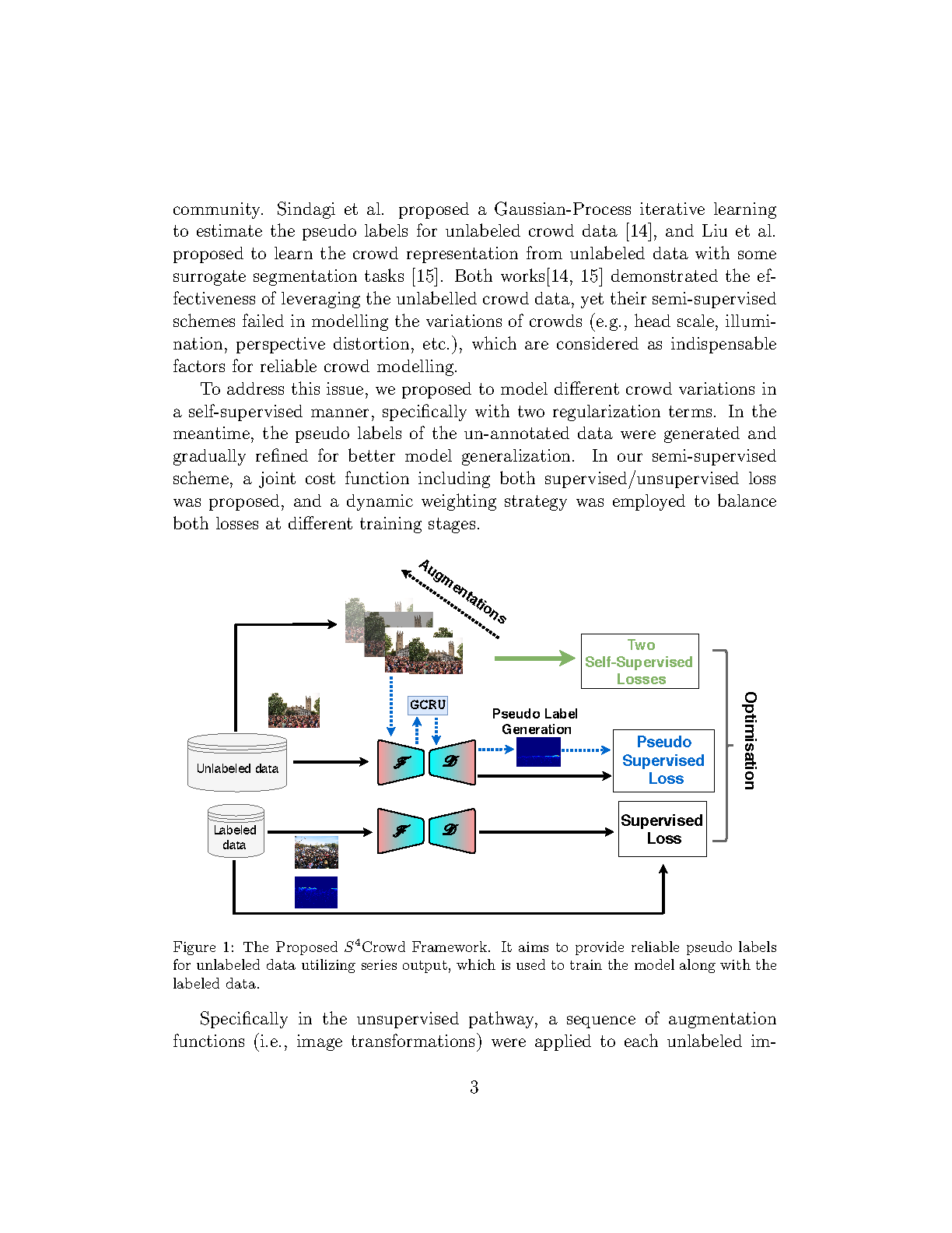 Automatic Crowd behavior analysis can be applied to effectively help the daily transportation statistics and planning, which helps the smart city construction. As one of the most important keys, crowd counting has drawn increasing attention. Recent works achieved promising performance but relied on the supervised paradigm with expensive crowd annotations. To alleviate the annotation cost in real-world transportation scenarios, in this work we proposed a semi-supervised learning framework S4Crowd, which can leverage both unlabeled/labeled data for robust crowd counting. In the unsupervised pathway, two self-supervised losses were proposed to simulate the crowd variations such as scale, illumination, based on which supervised information pseudo labels were generated and gradually refined. We also proposed a crowd-driven recurrent unit Gated-Crowd-Recurrent-Unit (GCRU), which can preserve discriminant crowd information by extracting second-order statistics, yielding pseudo labels with improved quality. A joint loss including both unsupervised/supervised information was proposed, and a dynamic weighting strategy was employed to balance the importance of the unsupervised loss and supervised loss at different training stages. We conducted extensive experiments on four popular crowd counting datasets in semi-supervised settings. Experimental results supported the effectiveness of each proposed component in our S4Crowd framework. Our method achieved competitive performance in semi-supervised learning approaches on these crowd counting datasets.